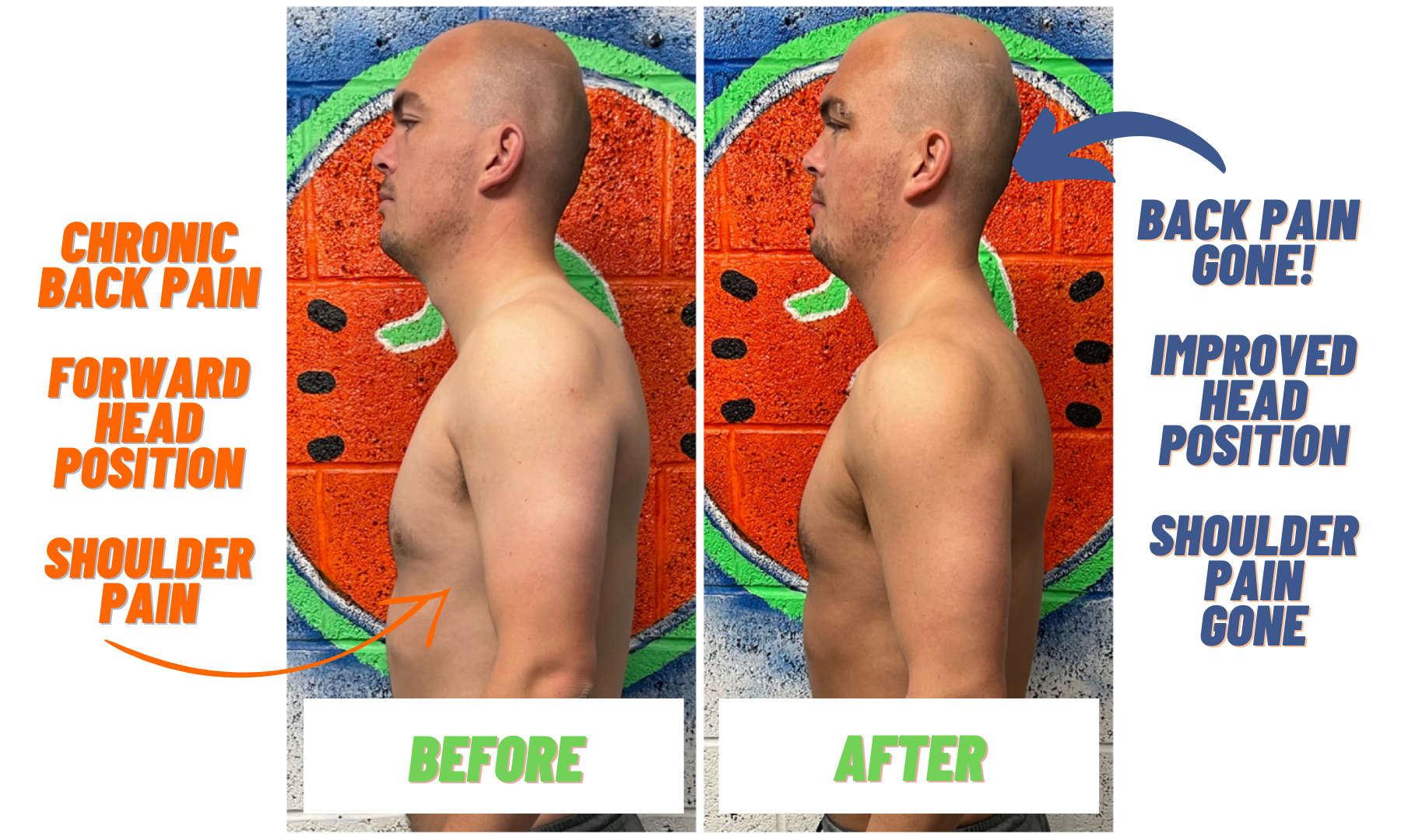 His progress has been great and posture is improving nicely. Hip pain and back pain is gone. Shoulder pain is almost gone too!